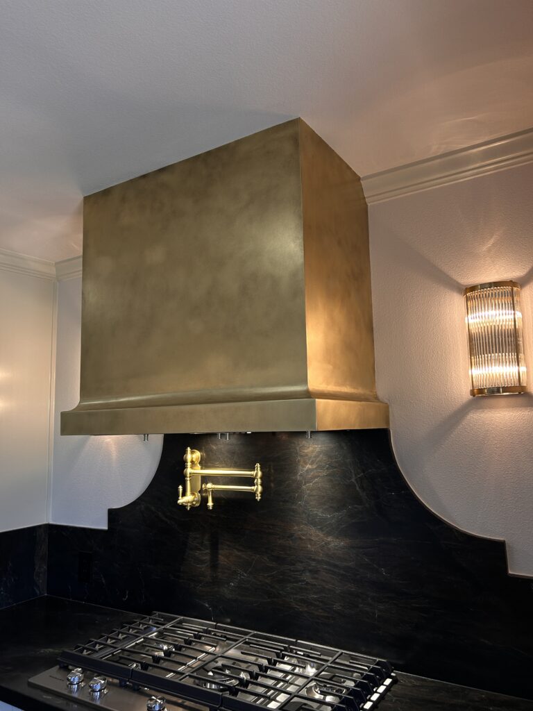Luxury has no limits when it’s handcrafted. Full brass, custom-built, with a sculpted curve where the skirt meets the apron - pure artistry in motion. #interiordesign #kitchendesign #customrangehood #custom #rangehoods